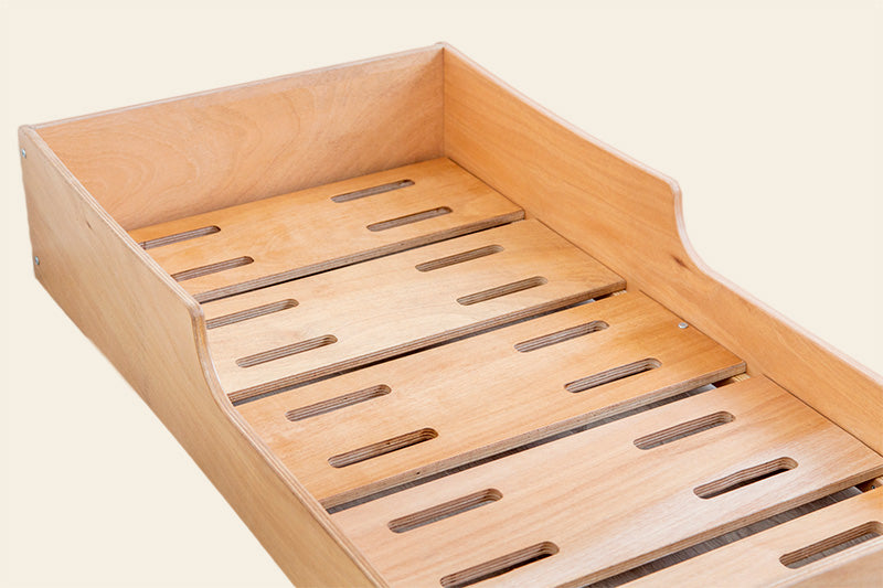 The adjustable bed frame allows you to easily raise or lower the height up to 6cm in 2cm increments to fit mattresses 8 to 13cm thick while keeping it safe for the little ones.